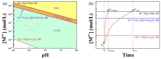 Thermodynamic–kinetics deposition sequence for the formation of oxide scales (a) and the schematic diagram of ion concentration change (b) in 600 MA.