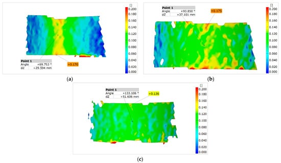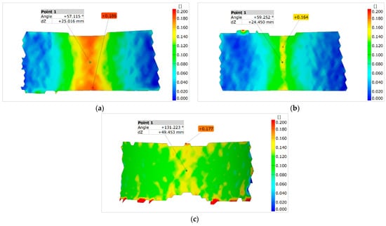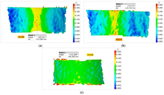 Both longitudinal and perpendicular samples were extracted for three-point bending tests (3PB). All tests were performed on a ZWICK ROELL servo-electric testing machine with a load cell capacity of 250 kN. To track the deformation of the specimen, each test was accompanied by digital image correlation (DIC) system ARAMIS SRX in 3D configuration. The resolution of the cameras was 4096 × 3068 px calibrated for the volume 190 × 150 × 60 mm. Frames were recorded with a constant frame rate of 4 fps. The outer surface of the specimens, which were subjected to tension, was covered by a stochastic black/white pattern, which allows the DIC system to calculate the strain map (mesh) over the area of the specimens. The mesh consists of ‘facets’, which have dimensions of 20 × 20 px with 18 px overlapping.