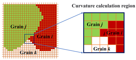 - Mason, J.K. Grain boundary energy and curvature in Monte Carlo and cellular automata simulations of grain boundary motion. Acta Mater. 2015, 94, 162–171. [Google Scholar] [CrossRef]
