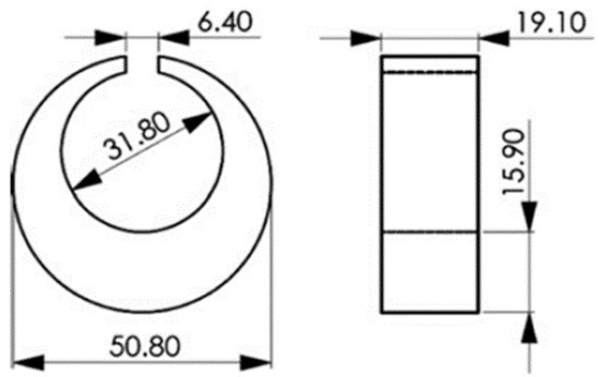 The geometry of the C-ring specimen used in the research. Dimensions are in mm.