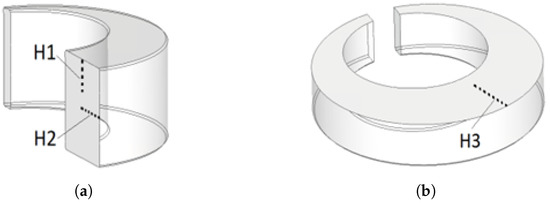 Hardness check locations in C-ring cross-sections: transverse (a) and longitudinal (b).