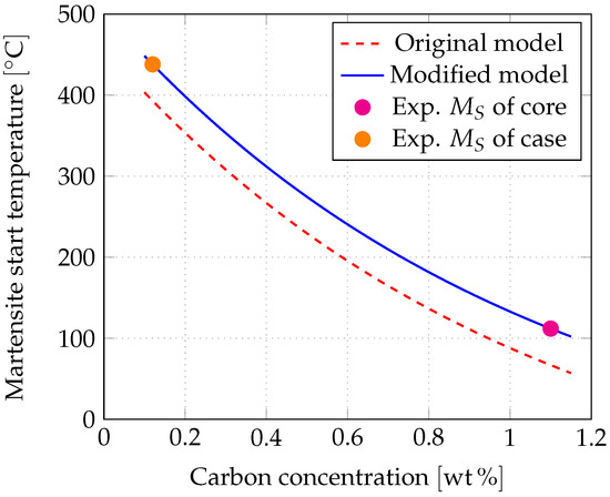 Comparison of martensite start temperature models. Original vs. modified by the author.