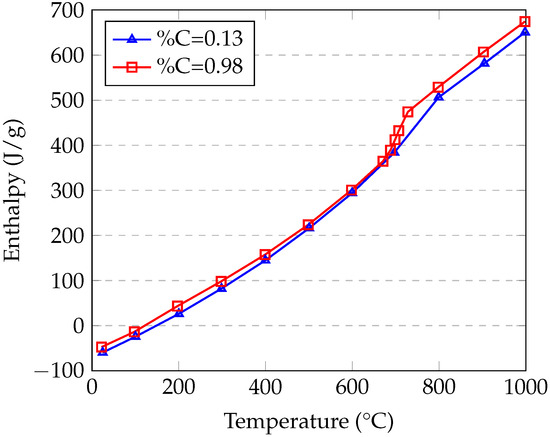 Enthalpies of Pyrowear 53 calculated in JMatPro [24].
