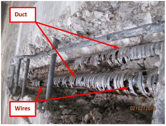Sampling spot of corroded wires with 40-mm diameter ducts.