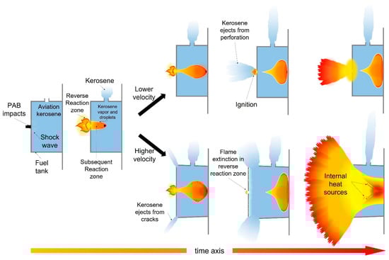 Figure 9. The schematic diagram of the ignition process of the PABs’ impact on fuel tanks.