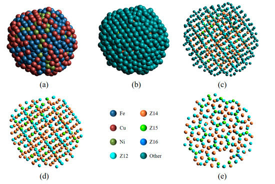 - Li, J.J.; Tian, Z.A.; Xie, Q.; Xiong, S.X. Component effect on microstructure of rapidly cooled FeCuNi alloys. Chem. Phys. Lett. 2020, 753, 137630. [Google Scholar] [CrossRef]