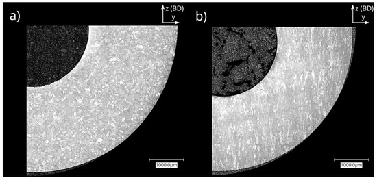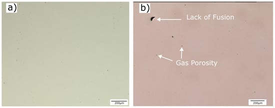 Hardness measurements are not influenced by the presence of porosity in the L-PBF samples [52]. However, depending on the shape and size of the pores, they can be detrimental to mechanical properties.