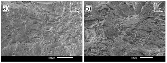 In the case of AM samples, both AM-AP and AM-HT show a ductile mode of failure in a nitrogen environment; however, the micro-voids appear to be ~65% smaller than the conventional samples. The smaller dimple size (~1.5 μm) is attributed to the fine microstructure produced from the L-PBF process [45,54]. As no significant variation is noted in the fracture surface of AM-AP and AM-HT samples, only one representative surface is shown here (Figure 14).