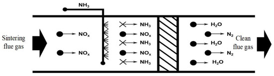 The iron and steel industry is an important guarantee for the security of the national economy and national defense. In the past three decades, the rapidly developing iron and steel industry has provided strong support for China’s economic construction. As a high-energy and high-pollution industry, it will inevitably have a certain impact on the environment. Within the industry, sintering flue gas in the traditional blast furnace ironmaking process has always been a problem to be solved. SOx, NOx and other harmful gases have caused certain damage to the environment, so discharged flue gas must be pretreated [1,2]. The most mature synergistic approach to desulfurization and denitration is semi-dry desulfurization coupled with low- and medium-temperature SCR denitration [3,4,5], which removes dust and sulfur oxides from the flue gas before entering the denitration process. The dust and sulfur contents of the sintered flue gas do not have a large impact on SCR catalysts [6].