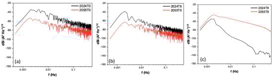 - The statistical analysis of the electrochemical noise signals in the time domain (LI, kurtosis, skewness) presented different types of corrosion in the alloys AA2024 and AA2055. Pitting corrosion was predominant, which is due to the precipitates present in both materials as a consequence of the heat treatments applied;