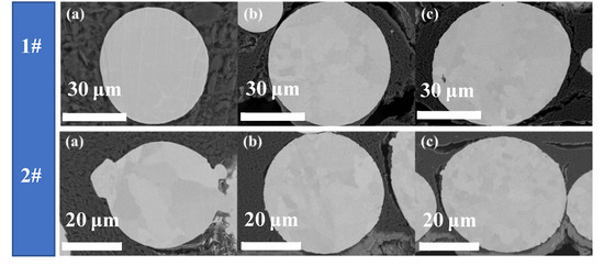 1# (a–c) and 2# (a–c) SEM morphology of cross-section of and powders with different particle sizes.