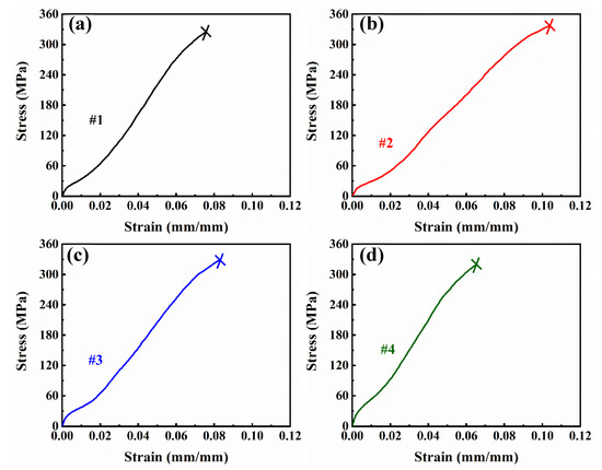 (a–d) The tensile engineering stress-strain curves of four samples prepared by laser cladding using four powders.