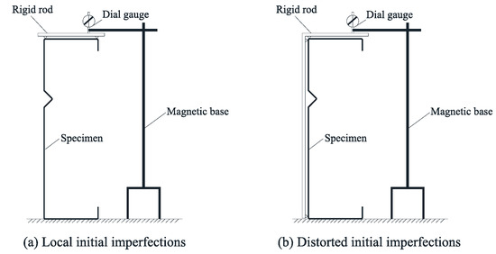 6. Zhang, J.; Young, B. Compression tests of cold-formed steel I-shaped open sections with edge and web stiffeners. Thin-Walled Struct. 2012, 52, 1–11. [Google Scholar] [CrossRef]