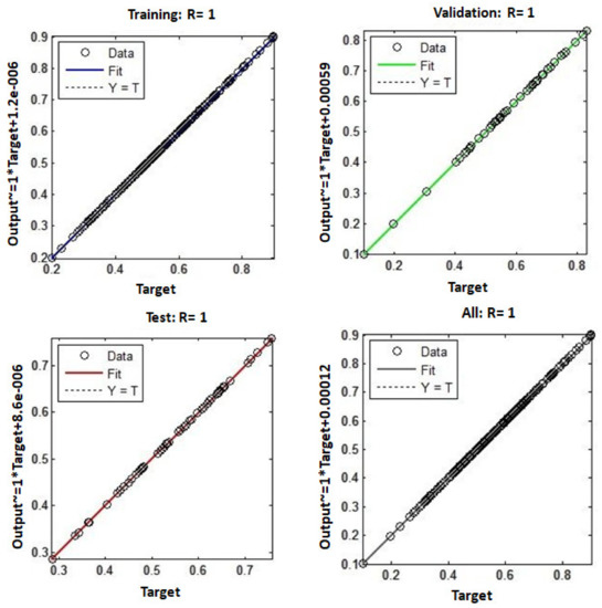 - The result shows that for training data, testing data, validation data, and all data, a correlation coefficient of R = 1 was found. Henceforth, there exists a good correlation between the observed and the predicted models.