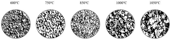 Changes in porosity of reduced samples as a function of temperature. Black areas indicate pores.