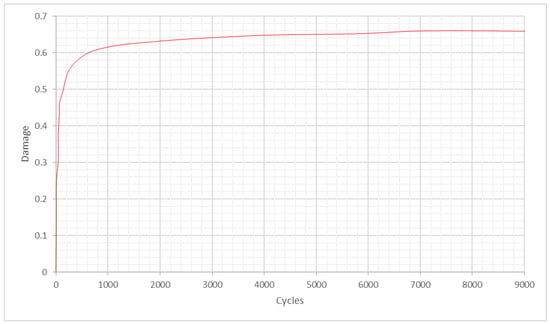 Damage versus fatigue cycles under the torsion scenario during cyclic loading.