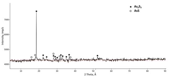 Recently, considerable attention was paid to the study of the roasting process for arsenic-containing raw materials in an atmosphere of superheated water steam at 700–1000 °C when arsenic is released into low-toxic sulfide forms—arsenic disulfide and sesquisulfide—as a result of secondary reactions [23,24,25].