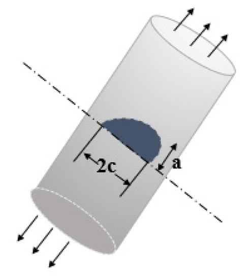Linear elastic fracture mechanics theory was used to compare crack propagation in immersed and aired specimens. The cracks in the specimens were generalized as defects with semielliptical forms, as is shown in Figure 4.