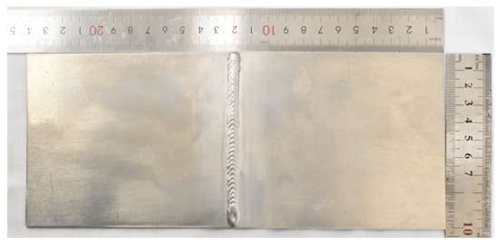 CMT welding uses the TPS400i intelligent gas-shielded welding machine produced by the Fronius Company, as shown in Figure 1. The welding joint is a butt welding joint without a groove, and the welding process is cold metal transition welding. Before welding, the oxide film of the welded part of the aluminum alloy was removed with a steel brush and polished, and the polished aluminum alloy surface was cleaned with acetone. The welding process parameters are shown in Table 2, and the sample after welding is shown in Figure 2.