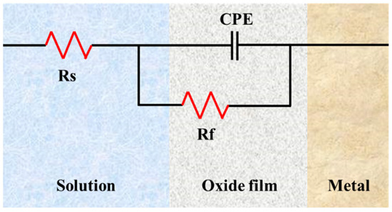 Figure 15 is the impedance fitting circuit diagram. ZSimpWin software was used to fit the equivalent circuit of TA10 alloy after annealing treatment at 780 °C for different annealing times. Its equivalent circuit parameters are shown in Table 3. The bilayer layer on the metal interface has the ability to accumulate charge, but the corrosion process at the interface is complicated by structural defects and uneven surface roughness. Therefore, a constant phase element (CPE) must be used to compensate for the deviation from the ideal capacitor. The impedance of CPE can be calculated by the following formula [27,28]: