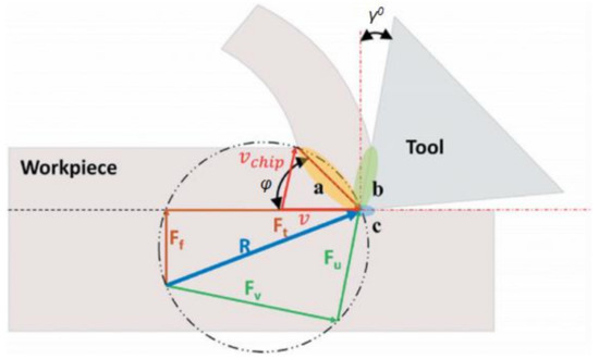 Regions of heat generation during metal orthogonal machining (adapted from [73]): (Caption: φ—shear plane angle; γ0—Rake angle, Ff—Feed force, Ft—tangential force).