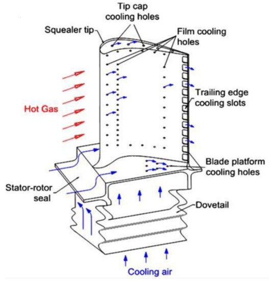 - Cherrared, D. Numerical simulation of film cooling a turbine blade through a row of holes. J. Therm. Eng. 2017, 3, 1110. [Google Scholar] [CrossRef]