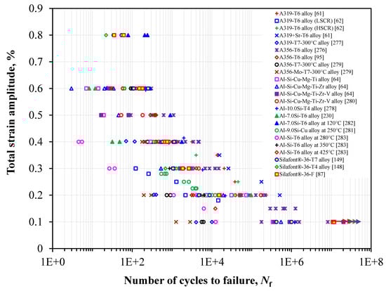 - Wang, M.; Pang, J.C.; Li, S.X.; Zhang, Z.F. Low-Cycle Fatigue Properties and Life Prediction of Al-Si Piston Alloy at Elevated Temperature. Mater. Sci. Eng. A 2017, 704, 480–492. [Google Scholar] [CrossRef]