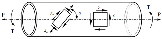 The thin-walled tubular specimen was subjected to a combination of tension and torsion loading, and its strain state is shown in Figure 1. Tension loading is applied in the axial direction of the specimen.