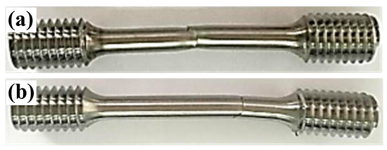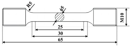 The mechanical property test was performed according to GB/T 4338-2006. The dimensions of the tensile samples are shown in Figure 1. The welding line was located at the center of the gauge length section when sampling. The samples were polished after lathe machining, with the surface roughness being less than 0.80 μm. The tensile test was carried out at room temperature on a Z100SH electronic universal testing machine (ZwickRoell, Ulm, Germany), with a tensile rate of 1 mm/min. Three samples were measured for each group, and then, the average values were taken as mechanical property data. After the tensile test was completed, the tensile fracture surface was observed via SEM to analyze the fracture failure mechanism.