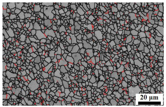 Noticeably, the grain boundaries in the WNZ for the as-welded sample seem unclear. And some sub-grain boundaries still exist in the WNZ for the as-welded sample, indicated by the red lines in Figure 4. This may be because the energy accumulated by high temperature and plastic deformation in the weld zone under the inertia friction welding parameters used in this study is inadequate to fully complete the recrystallization process during the inertia friction welding.