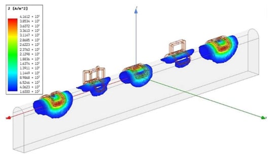 - Machado, M.A.; Rosado, L.S.; Santos, T.G. Shaping Eddy Currents for Non-Destructive Testing Using Additive Manufactured Magnetic Substrates. J. Nondestruct. Eval. 2022, 41, 50. [Google Scholar] [CrossRef]