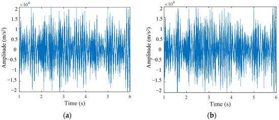 Vibration signal of the cutterhead support: (a) Before main bearing damage; (b) After main bearing damage.