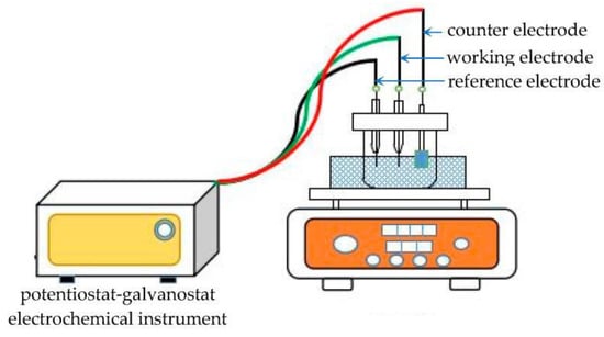 Schematic representation of the electrochemistry and electrodeposition experiment apparatus. Reproduced from [30] with permission from MDPI, 2023.