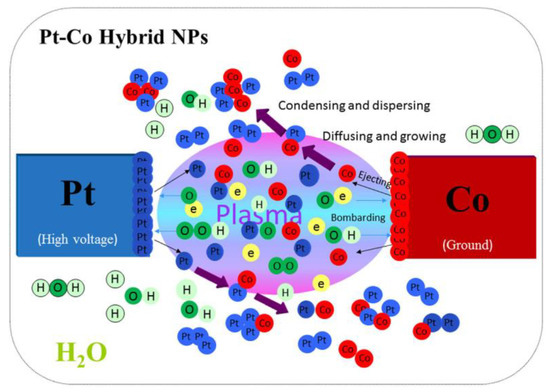 Schematic diagram for the synthesis of Pt/CoPt-1 composite NPs by solution plasma sputtering. Reproduced from [61] with permission from Nature, 2017.