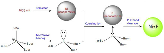 The mechanism for the synthesis of Ni2P nanoparticles from the [P4444]Cl ionic liquid. Reproduced from [19] with permission from Elsevier, 2021.