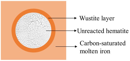 Schematic diagram of the phase evolution of a hematite pellet in an iron bath [45].
