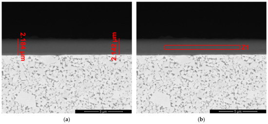 In Figure 2, the coating’s constitution can be observed, as well as the measurements performed to evaluate the total coating thickness.