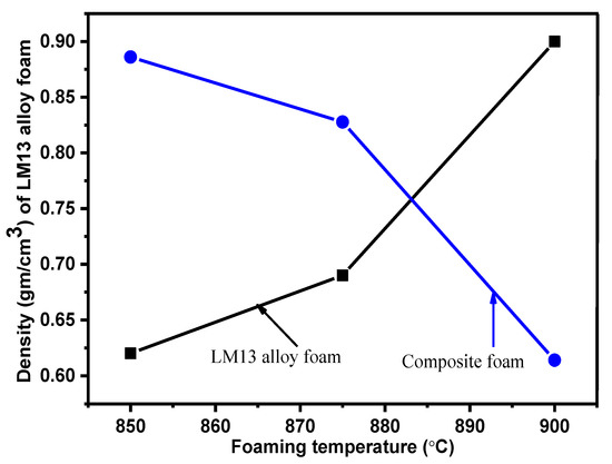 The effect of foaming temperature on the density of LM13 alloy and composite foam.