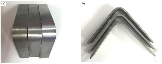 In the process of wheel rim forming, many processes involve bending, so it is necessary to evaluate the cold bending formability of the joint under the optimal welding process. According to the actual needs, the bending angle is generally less than 90° in the actual bending forming process of the rim, so it is necessary to evaluate the cold bending performance of the joint under the optimal welding process parameters when α = 90°. The surface state of the cold-formed joint specimen is shown in Figure 7. It can be observed that when α = 90°, there are no macroscopic cracks visible on the surface and side of the weldment, which indicates that the cold bending performance of the joint under the optimal welding process is qualified.