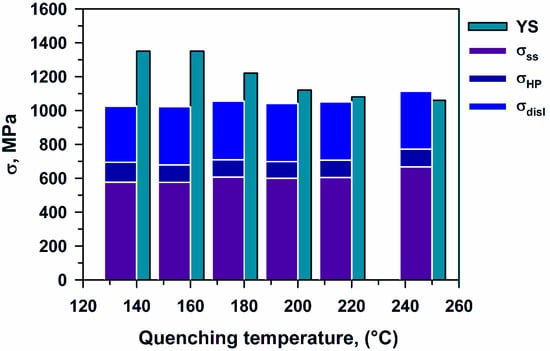 Effect of quenching temperature on the contributions of different strengthening mechanisms to the yield strength.
