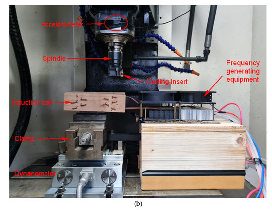 - Baili, M.; Wagner, V.; Dessein, G.; Sallaberry, J.; Lallement, D. An Experimental Investigation of Hot Machining with Induction to Improve Ti-5553 Machinability. Appl. Mech. Mater. 2011, 62, 67–76. [Google Scholar] [CrossRef]
