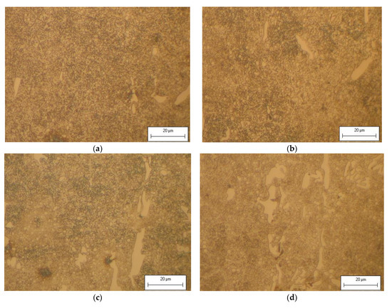 Microstructure of Material Samples at Different Temperatures: (a) Room Temperature, (b) 200 °C, (c) 300 °C, and (d) 400 °C.