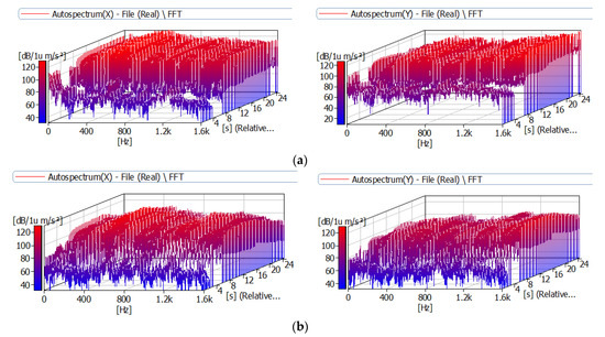 The vibration results at room (a) and heating at 200 °C (b) in the X and Y directions.