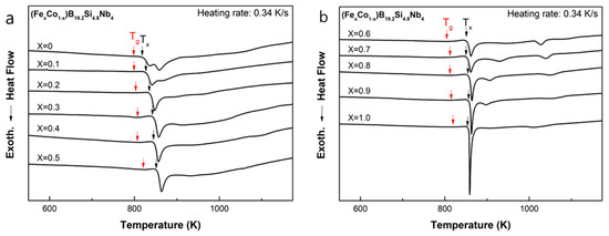 | Co14.4Fe57.6B19.2Si4.8Nb4 (x = 0.8) | As-spun | 853.5 | 809.1 | 112.5 |