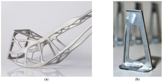 The combined advantages of AM and TO allow the manufacturing of structural components with high mechanical properties and a considerably lower mass than the original ones. Two significant examples are given in Figure 2.