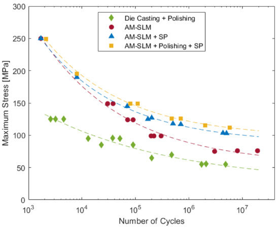 - Uzan, N.E.; Ramati, S.; Shneck, R.; Frage, N.; Yeheskel, O. On the Effect of Shot-Peening on Fatigue Resistance of AlSi10Mg Specimens Fabricated by Additive Manufacturing Using Selective Laser Melting (AM-SLM). Addit. Manuf. 2018, 21, 458–464. [Google Scholar] [CrossRef]