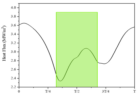 Figure 10. Transient heat flux 10 mm below the meniscus during one cycle.