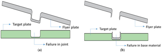 The successful joint samples made using 8 kJ discharge energy were used to test the two different mechanical loading tests: the peel and lap-shear tests. In the peel test, there are two modes by which the joint samples failed. One is the separation failure mode, and the other is the crack failure mode. The joint samples are pulled out after applying the loading condition in the separation failure mode. On the other hand, the base metal and the joint regions are fractured in the crack failure mode. The schematics of the two modes of failure in the peel test are shown in Figure 10.