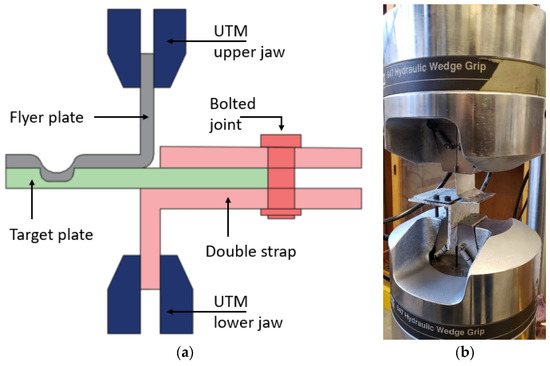 Two metal plates were used as a clamp to hold the samples of peel tests. The clamp was used to hold the target with the help of the bolted joint. The schematic of the arrangement made for the peel tests is shown in Figure 11. A photograph of the failed sample with the crack failure mode is shown in Figure 12.