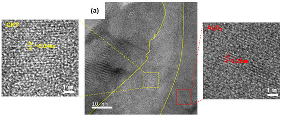 - Zhang, X.; Li, S.; Pan, B.; Pan, D.; Zhou, S.; Yang, S.; Jia, L.; Kondoh, K. A novel strengthening effect of in-situ nano Al2O3 on CNTs reinforced aluminum matrix nanocomposites and the matched strengthening mechanisms. J. Alloys Compd. 2018, 764, 279–288. [Google Scholar] [CrossRef]